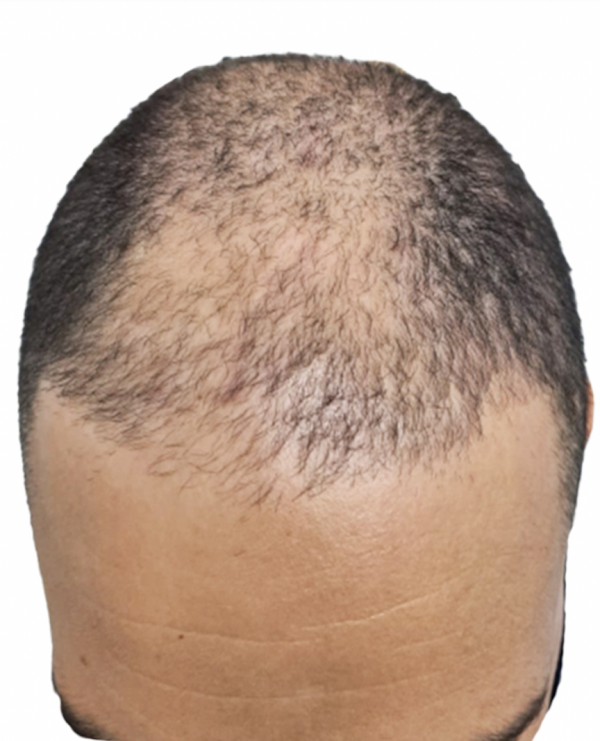 Se aprecia el área de donde se han extraído demasiados folículos