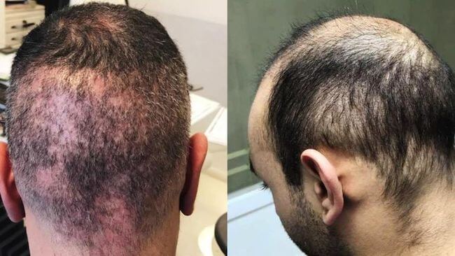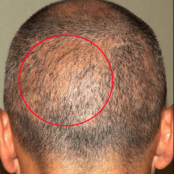 Se aprecia el área de donde se han extraído demasiados folículos